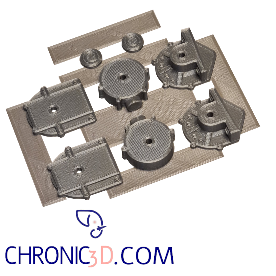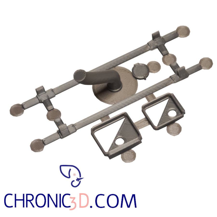 The parts were printed on the latest generation of printers with nozzles ranging from 0.25 to 0.4 mm, depending on the part.